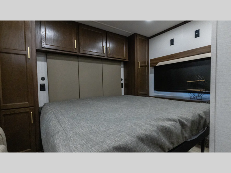 Sleeps 6 Slides 5 Length 41 ft 5 in Ext Width 8 ft Ext Height 13 ft 5 in Interior Color Pebble, Livingston, Dune Exterior Color Full Body Paint; Onyx, Sapphire, Opal Hitch Weight 2685 lbs GVWR 16685 lbs Dry Weight 14694 lbs Cargo Capacity 1991 lbs Fresh Water Capacity 75 gals Grey Water Capacity 82 gals Black Water Capacity 41 gals Available Beds King Refrigerator Type 12V with Icemaker Refrigerator Size 18 cu ft Cooktop Burners 3 Shower Size 48" x 30" Number of Awnings 2 Water Heater Capacity 12 gal Water Heater Type LP/110V AC BTU 30000 btu TV Info LR 50" Telescoping Smart TV, BR 32" Smart TV Awning Info 15' and 15' Electric w/LED Lights Axle Count 2 Washer/Dryer Available Yes Shower Type Shower w/Seat Electrical Service 50 amp Similar Floorplans
