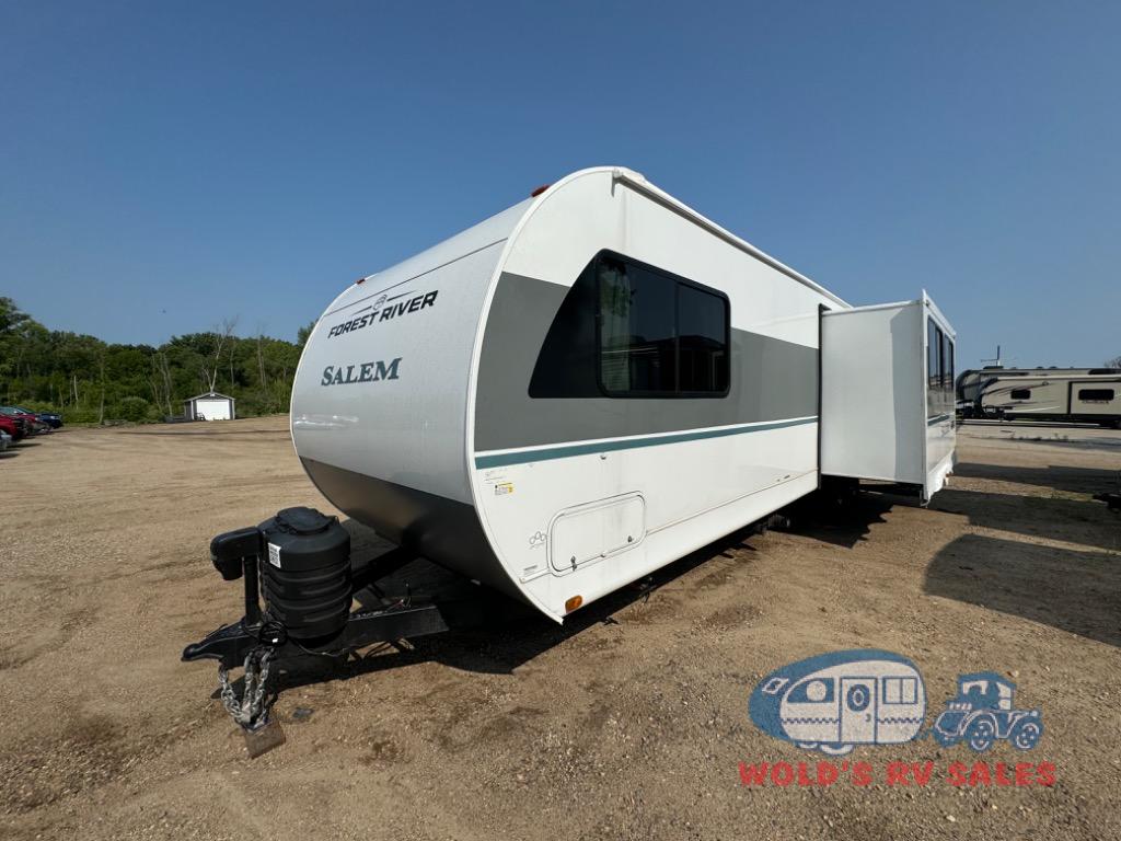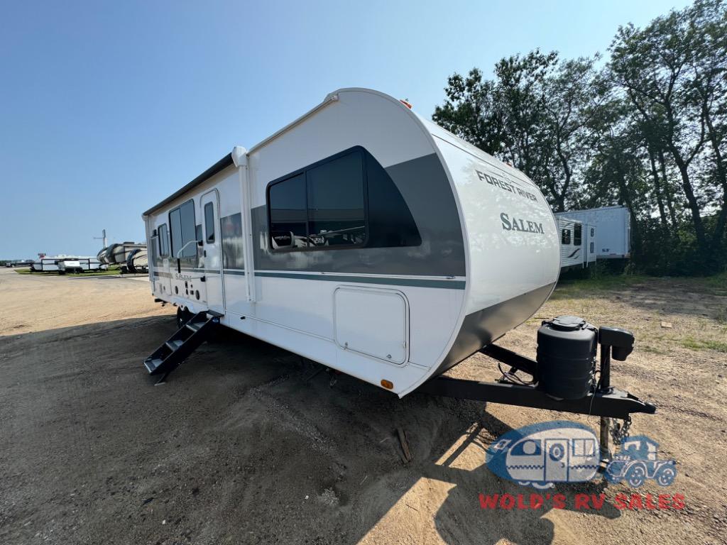 Enjoy years and years of memories with any one of these Forest River Salem travel trailers! They are built with a Dicor PVC roof membrane, a powder coated I-beam frame, and an aerodynamic front radius profile for an easier tow. The triple seal slide out system prevents water from seeping inside and keeps it outside where it belongs. The Best In Class Value Package includes upgraded designer furniture, seamless countertops with no T-mold, and two zone residential soundbars with FM, Bluetooth, HDMI and USB. You will also appreciate the heated and enclosed Accessi-Belly with removable underbelly panels, the power tongue jack with an LED light, and the designated CPAP storage. Some new upgraded features include: a Versa-Tilt bed, a 60K tankless water heater, upgraded showerhead, and so much more!