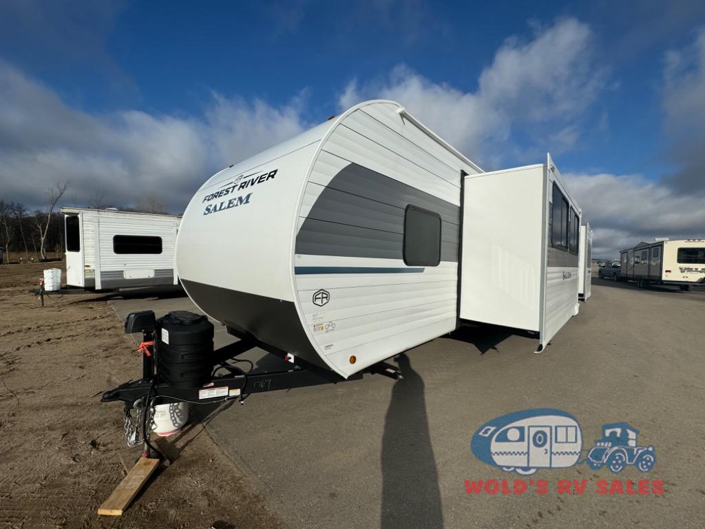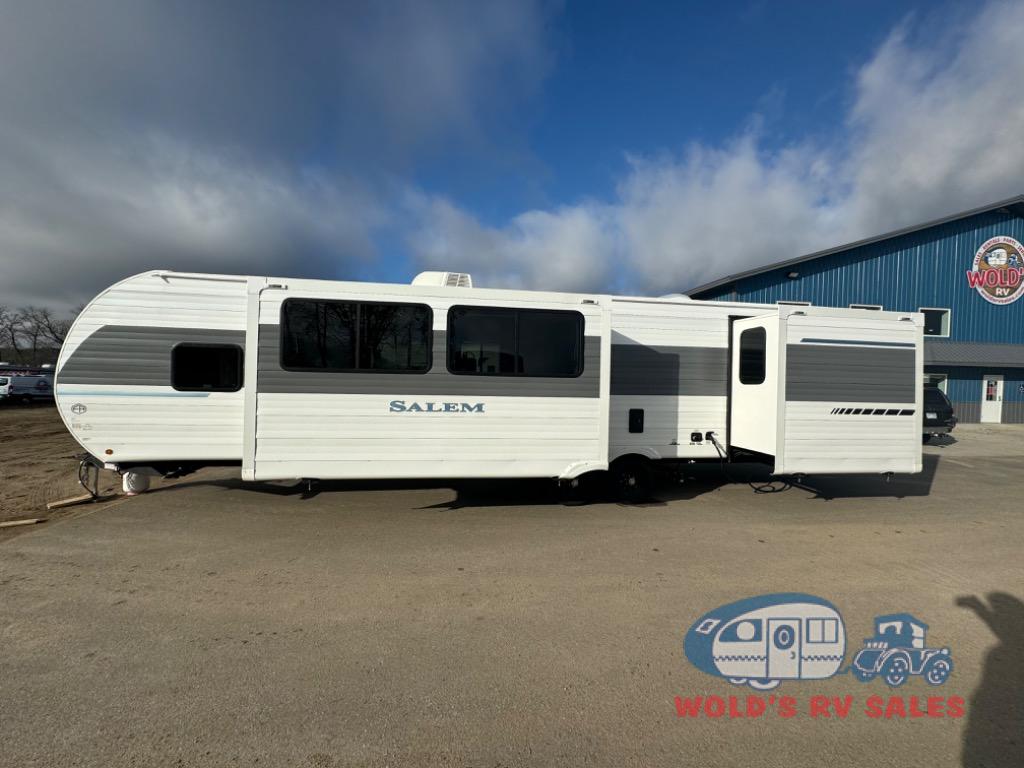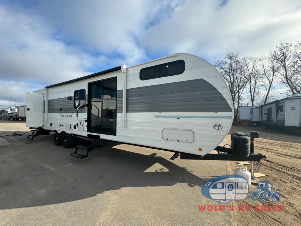 The Salem travel trailers are packed with hassle-free camping amenities! There are a variety of floorplans to choose from between three different regions. The heated and enclosed Accessibelly will help protect against the elements and debris during transport, and the exterior retro/metal redesign is sure to be eye-catching! There are stylish roller shades inside, along with updated backsplash, elegant curtain rods and curtains, plus many more interior comforts! Choose a Salem travel trailer today for quality and value!