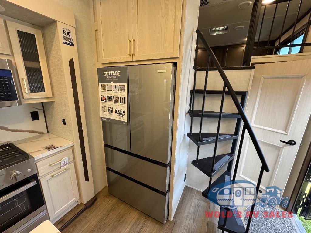 With any Cedar Creek Cottage destination trailer by Forest River, you can enjoy extended stays with residential features at the location of your choice! Each model is built with 3M bonded sidewalls that grow stronger with age and are resistant to UV, heat, oil, moisture, and more. There is also an AlphaPly TPO roof membrane, detachable entry steps, and new waterproof and bug proof Vixenite slide room floor panels for added durability. Head inside where you'll find residential dovetail, self-closing drawers, flush floor slides in the kitchen and living area, a residential style headboard and luxurious bedding decor, and extra storage for linens in the bedroom and bath. Each model is also pre-wired for satellite to the roof, and you can stay connected with the new Cradle Point WiFi/5G antenna and Day 1 connectivity.