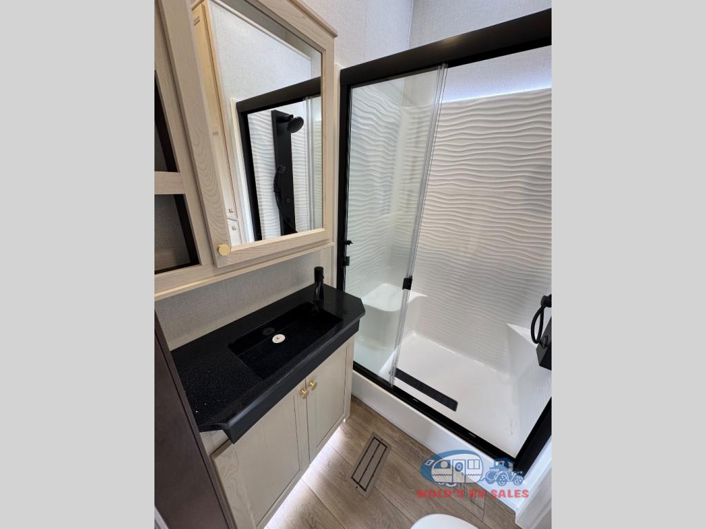 With any Cedar Creek Cottage destination trailer by Forest River, you can enjoy extended stays with residential features at the location of your choice! Each model is built with 3M bonded sidewalls that grow stronger with age and are resistant to UV, heat, oil, moisture, and more. There is also an AlphaPly TPO roof membrane, detachable entry steps, and new waterproof and bug proof Vixenite slide room floor panels for added durability. Head inside where you'll find residential dovetail, self-closing drawers, flush floor slides in the kitchen and living area, a residential style headboard and luxurious bedding decor, and extra storage for linens in the bedroom and bath. Each model is also pre-wired for satellite to the roof, and you can stay connected with the new Cradle Point WiFi/5G antenna and Day 1 connectivity.