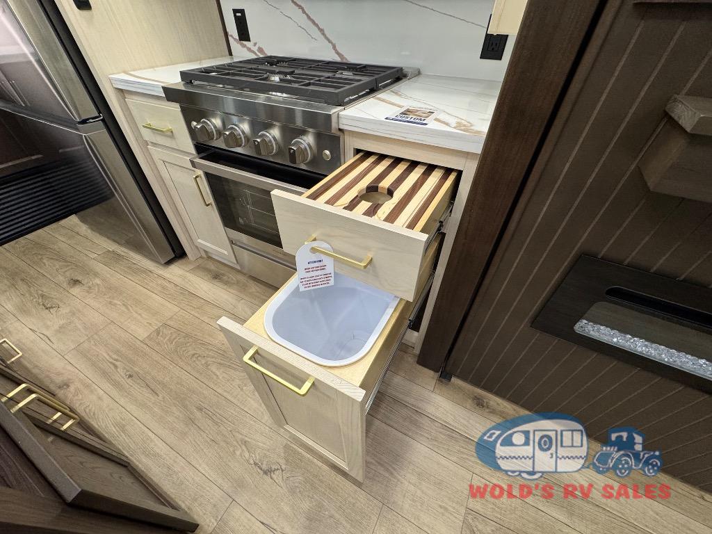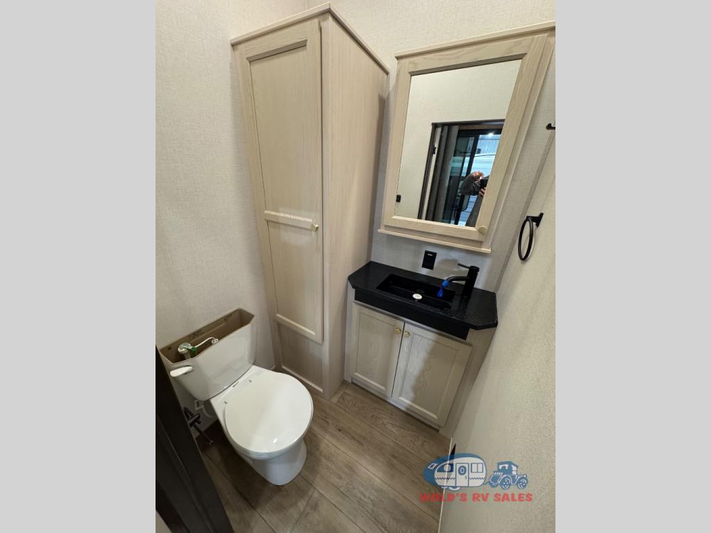 With any Cedar Creek Cottage destination trailer by Forest River, you can enjoy extended stays with residential features at the location of your choice! Each model is built with 3M bonded sidewalls that grow stronger with age and are resistant to UV, heat, oil, moisture, and more. There is also an AlphaPly TPO roof membrane, and new waterproof and bug proof Vixenite slide room floor panels for added durability. Head inside where you'll find residential dovetail, self-closing drawers, flush floor slides in the kitchen and living area, a residential style headboard and luxurious bedding decor, and extra storage for linens in the bedroom and bath.