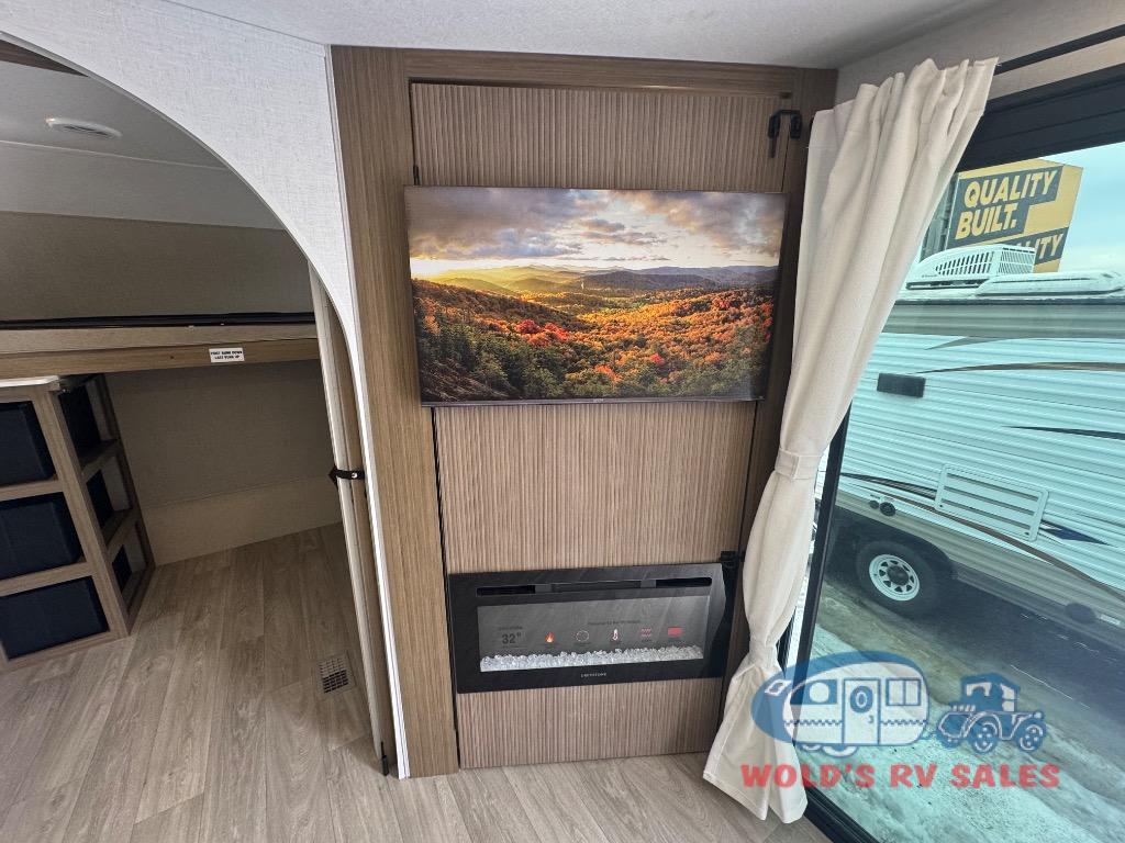 After you've had a long day of sightseeing and adventuring, you will certainly appreciate having this Salem travel trailer to come back to! If you aren't ready to stay indoors for the night, you can keep the party going outside under the 18' awning, and if you need any extra lawn chairs, you can grab them from the pass-through storage compartment. And, you don't have to stop enjoying a good fire just because you have to go inside because the interior fireplace will provide great ambiance. There are dual entry doors which will definitely come in handy when camping with a large group, and there is plenty of seating space on the Versa-Lounge and booth dinette.