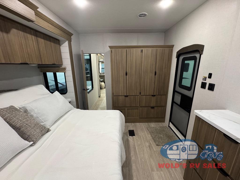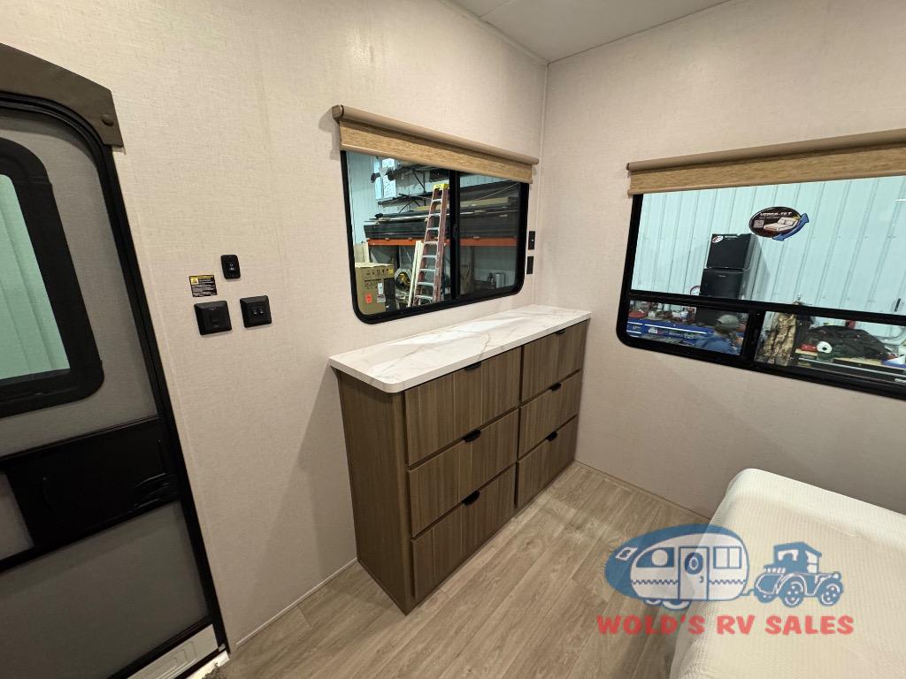 The Forest River Salem Villa Series destination trailer offers you an excellent space to relax in and rejuvenate your adventurous spirit! The 7' interior height is going to provide you with an open and spacious living area, and the heated and enclosed accessi-belly will protect your trailer from the elements. The Salem Villa Series comes loaded with upgraded designer furniture, a modern headboard redesign, stainless steel kitchen appliances, adjustable texture roller shades and enhanced floating shelves. There is also a few new features, including JBL speakers in the interior/exterior, a 4K blade lighting, a 60K tankless water heater, and more comforts!
