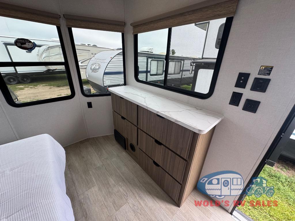 The Forest River Salem Villa Series destination trailer offers you an excellent space to relax in and rejuvenate your adventurous spirit! The 7' interior height is going to provide you with an open and spacious living area, and the heated and enclosed accessi-belly will protect your trailer from the elements. The Salem Villa Series comes loaded with upgraded designer furniture, a modern headboard redesign, stainless steel kitchen appliances, adjustable texture roller shades , and central vacuum with sweep attachment for a spotless home. There is also a few new features, including JBL speakers in the interior/exterior, a 4K blade lighting, a 60K tankless water heater, and more comforts!
