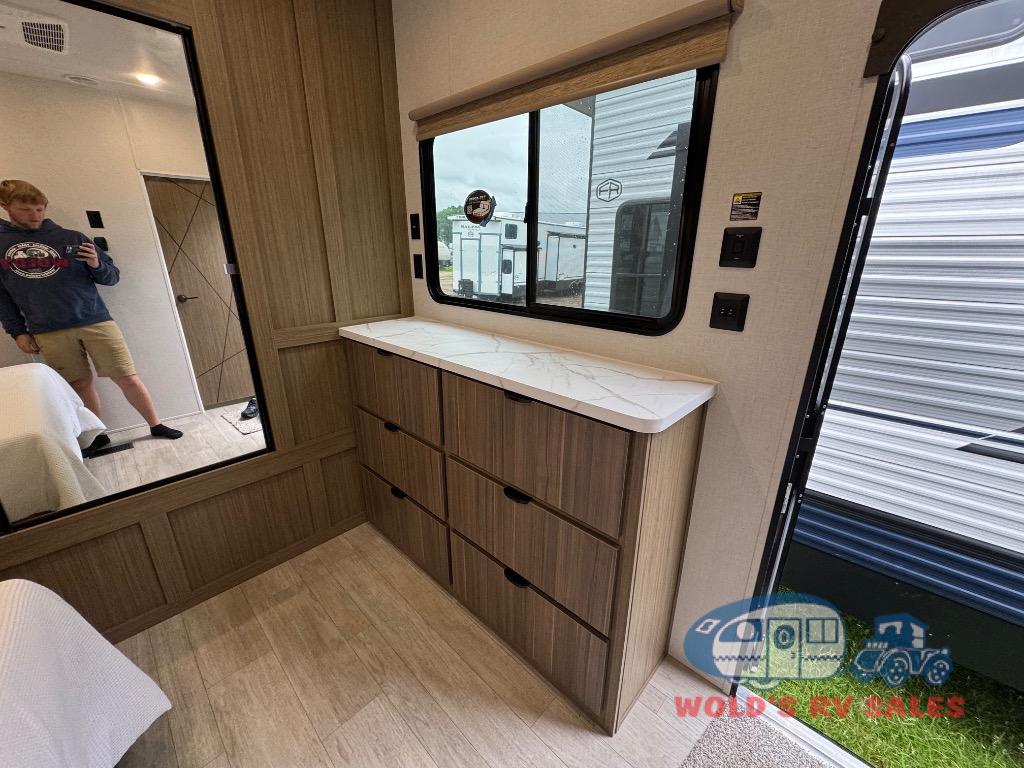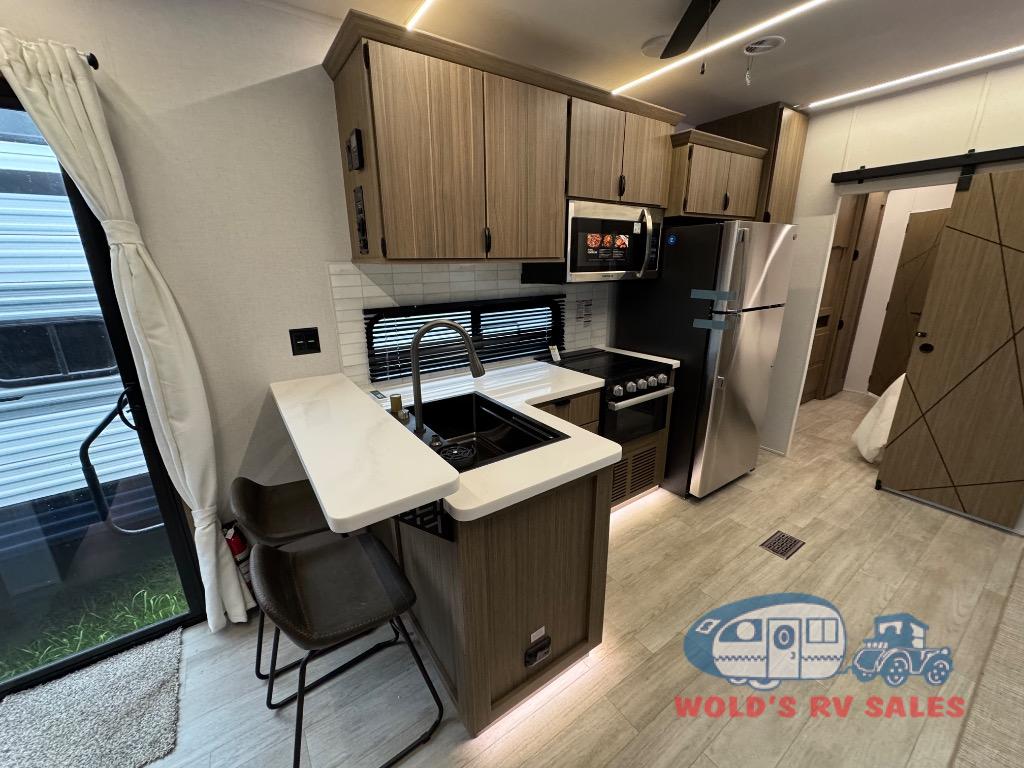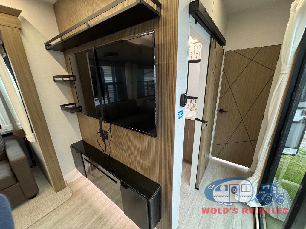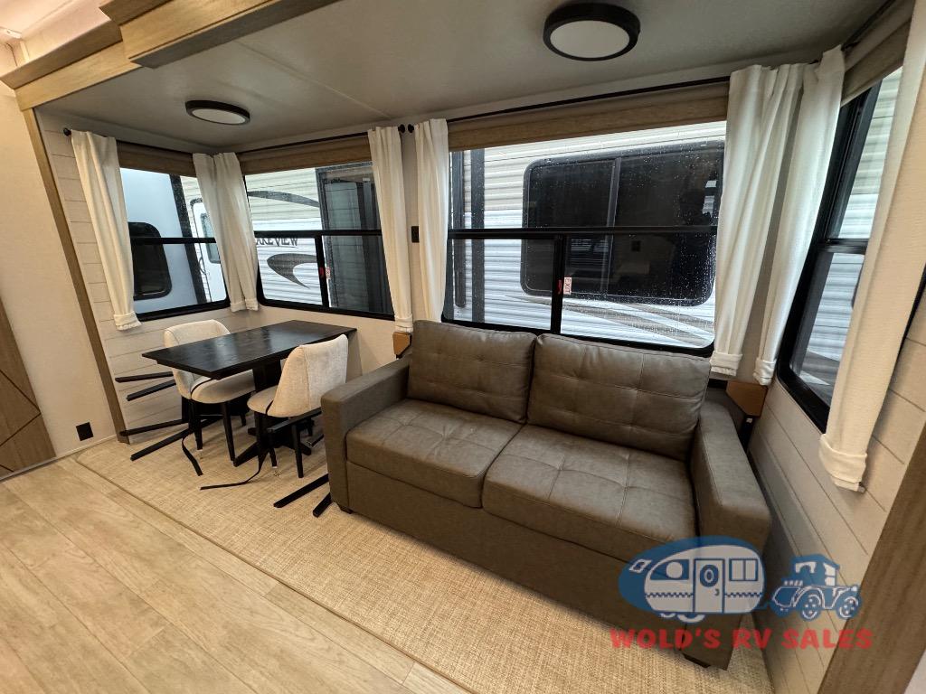 The Forest River Salem Villa Series destination trailer offers you an excellent space to relax in and rejuvenate your adventurous spirit! The 7' interior height is going to provide you with an open and spacious living area, and the heated and enclosed accessi-belly will protect your trailer from the elements. The Salem Villa Series comes loaded with upgraded designer furniture, a modern headboard redesign, stainless steel kitchen appliances, adjustable texture roller shades , and central vacuum with sweep attachment for a spotless home. There is also a few new features, including JBL speakers in the interior/exterior, a 4K blade lighting, a 60K tankless water heater, and more comforts!