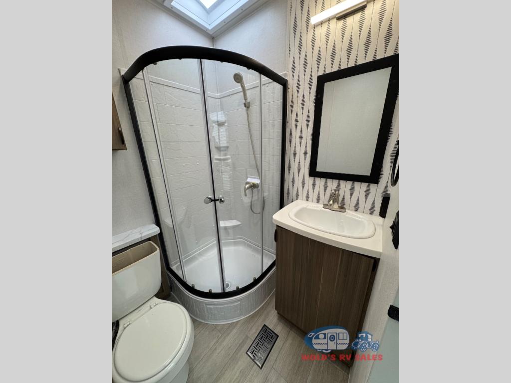 Head to your favorite place for a long weekend, or for the summer with this Salem Villa destination trailer. You and your family or guests will love that there are two separate bedrooms and two full baths! Both bedrooms feature a slide out custom queen Versa Tilt bed, wardrobe storage and more storage in overhead cabinets and/or drawers. The rear private bedroom features its own bath with walk-in shower, toilet, and vanity with sink, plus an exterior entry door. The combined living room and kitchen offer a large slide for added floor space, a dining table with four chairs, and a sofa that can also provide added sleeping for guests. The fully equipped kitchen makes it easy to enjoy your time away from home. On the outside, a 21' awning creates even more living space for enjoying your surroundings in the fresh air.