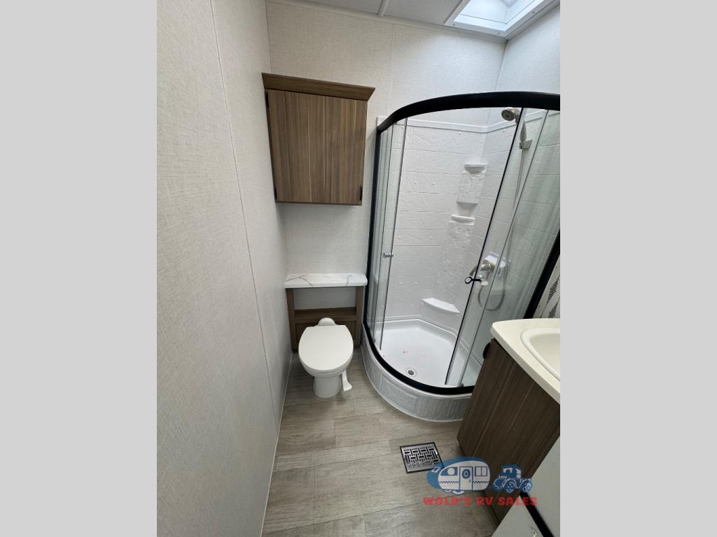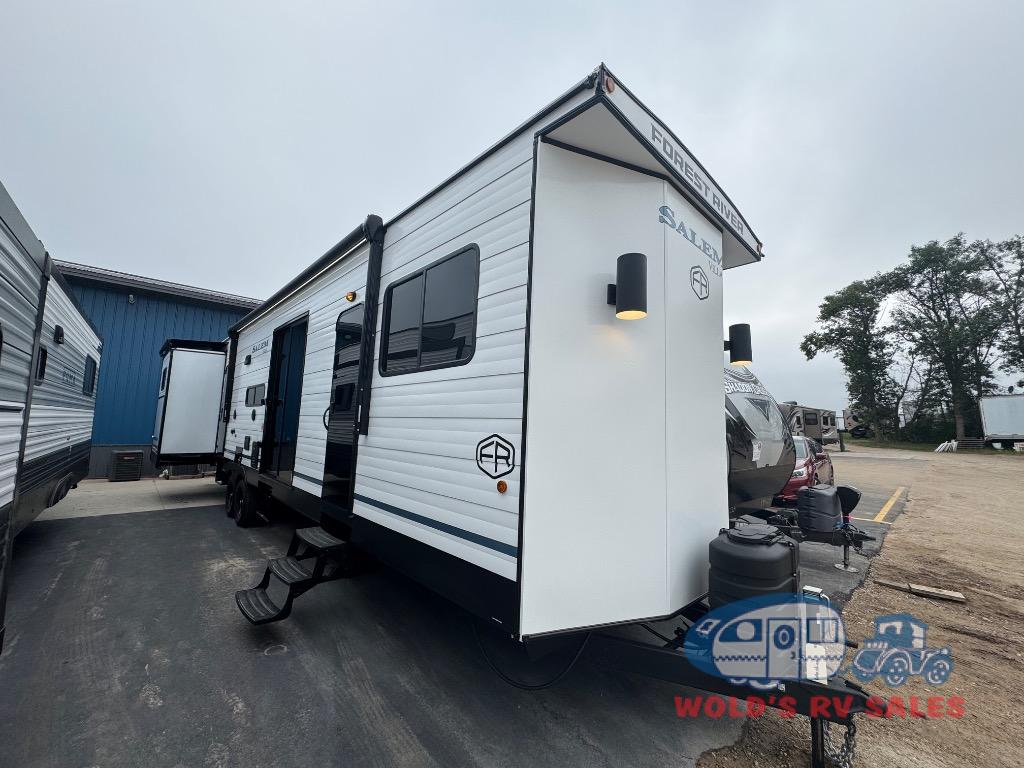 The Forest River Salem Villa Series destination trailer offers you an excellent space to relax in and rejuvenate your adventurous spirit! The 7' interior height is going to provide you with an open and spacious living area, and the heated and enclosed accessi-belly will protect your trailer from the elements. The Salem Villa Series comes loaded with upgraded designer furniture, a modern headboard redesign, stainless steel kitchen appliances, adjustable texture roller shades , and central vacuum with sweep attachment for a spotless home. There is also a few new features, including JBL speakers in the interior/exterior, a 4K blade lighting, a 60K tankless water heater, and more comforts!