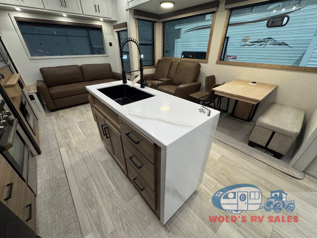 With each Sierra Destination Trailer by Forest River you will enjoy many luxurious features, such as crown molding over the kitchen cabinets, solid surface kitchen countertops, a memory foam mattress, plus so much more. The extra large picture windows throughout let natural light in and provide beautiful outdoor views, and each model includes three or more slides for added interior space. You'll find many exterior conveniences, like the porch light with an interior switch, the rain gutters with extra long drip spouts to prevent black streaking, and an electric awning with LED light strip, plus more! You will stay comfortable year around with dual 15,000 A/C units plus each model is constructed with an Underbelly Armor for better protection and insulation!