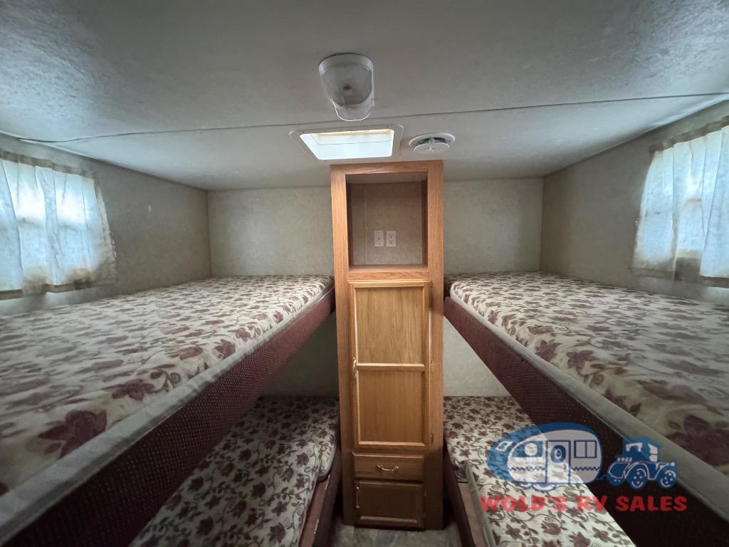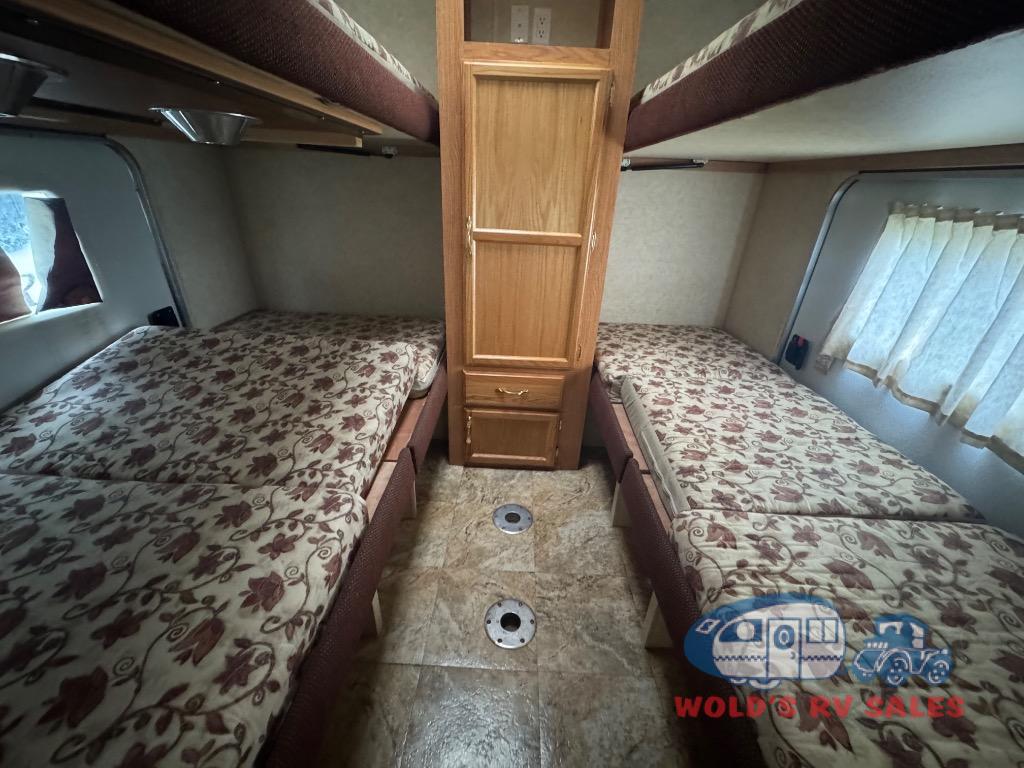 Double Bunk Beds w/One Set Oversized, Wardrobe/TV Cabinet Between, Table, Ent. Center, Dinette w/Extendable Seating Opt. J-Steel Sofa, Tub/Shower, Medicine Cabinet, Refrigerator, Microwave Above Range, Double Kitchen Sink, Flip-Up Counter Extension, Overhead Cabinets, Queen Bed, TV Shelf, and More.
