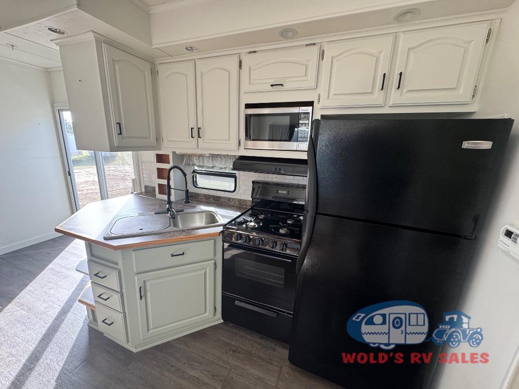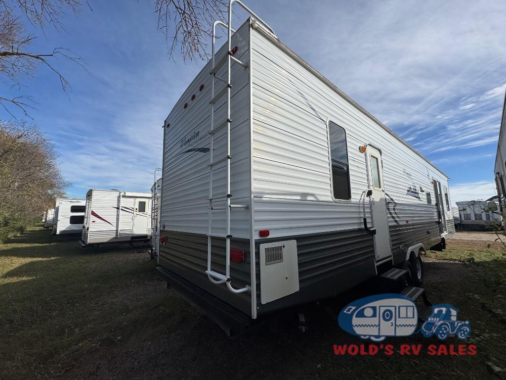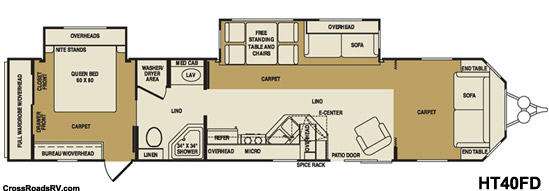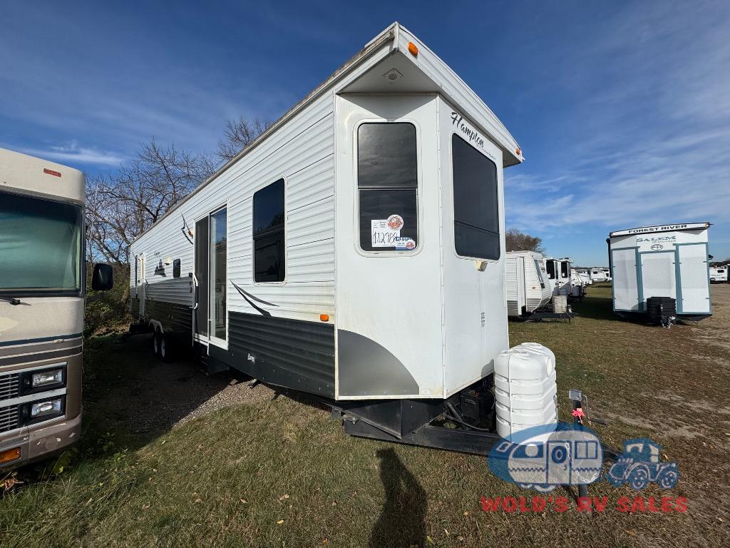 Double Slide Hampton Park Trailer w/Front Living Area & Rear Private Bedroom, Sofa w/End Tables, Recliner, Patio Door, 2nd Sofa & Free Standing Dinette Slideout, Double Kitchen Sink, Ent. Center, Spice Rack, 3 Burner Range w/Microwave, Refrigerator, Overhead Cabinets, Angle Shower, Lav. w/Med. Cabinet, Linen Cabinet, Front Queen Bed Slideout w/Overhead Cabinet, Private Entrance, Dresser, Full End Wall Wardrobe & Much More.