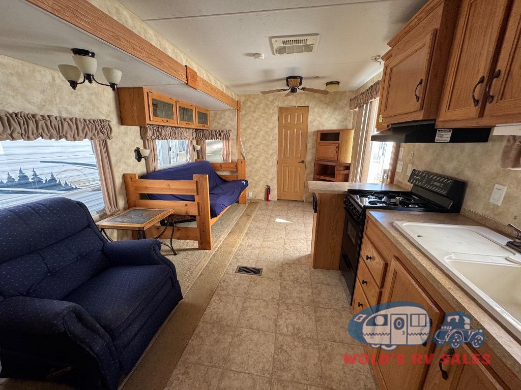 Triple Slide Hy-Line Park Model, Rear Bed Slide, Tub, Toilet, Lav., Ward., Dbl. Kitchen Sink, 4-Burner Range, L-Counter, Refrigerator, Dinette/Sofa Slide, Bunk Bed Slide, Dinette, Ward., Overhead Cabinets Throughout & Much More.