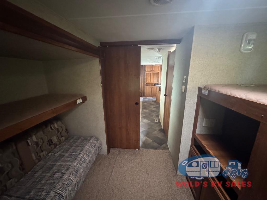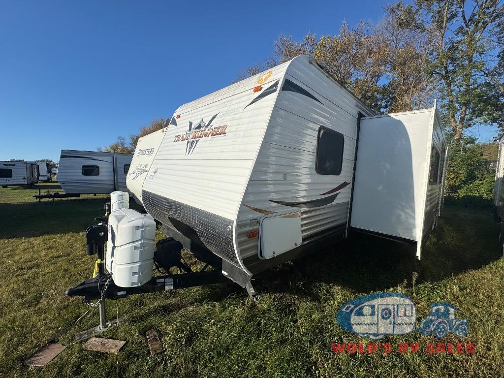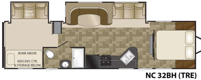 Trail Runner Edition SLT Bunkhouse Travel Trailer by North Country w/Rear Sofa Slideout w/Bunk Above, Kids Ent. Center & Storage w/Bunk Above, Bath w/Private Entry Including: Toilet, Vanity w/Sink, & Tub/Shower, Wardrobe, U-Dinette & Sofa Slideout, Refrig., 3 Burner Range, Dbl. Kitchen Sink, Ent. Center w/LCD TV w/Living Area & Bedroom Viewing, Front Queen Bed w/Storage Both Sides and Much More!