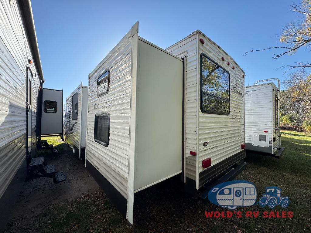 Triple Slide Catalina Destination Model w/Rear Flip-Up Bunk Slide w/Sofa Below, 1/2 Bath w/Sink & Linen Cabinet, Ent. Center/Ward., w/Storage, Res. Refrig., Pantry, Booth Dinette & 70" Sofa Slide, Range w/Micro., Kitchen Sink, Patio Doors, Shower w/Glass Door, Sink w/Med. Cabinet, Closet w/Shelf, Linen Cabinet & Toilet, Front Queen Bed Slide w/Nightstands, C-Top, Ent. Center, Ward. w/Drawers, Private Entry & More! Avail. Options May Include: Ceiling Fans, COA Cube Futon.