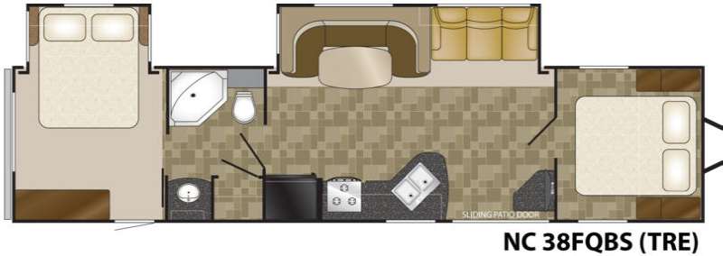 North Country Trail Runner Edition SLT by Heartland RV w/Rear Queen Bed Slide w/Nightstands, Storage, Private Bedroom Entry, Walk-thru Bath Including: Angle Shower, Toilet & Sink, Refrigerator, 3 Burner Range, Dbl. Kitchen Sink w/Overhead, U-Dinette & Sofa Slideout, Sliding Patio Door, LCD TV, Door to Front Queen Bed w/Storage Both Sides of Bed and Much More!