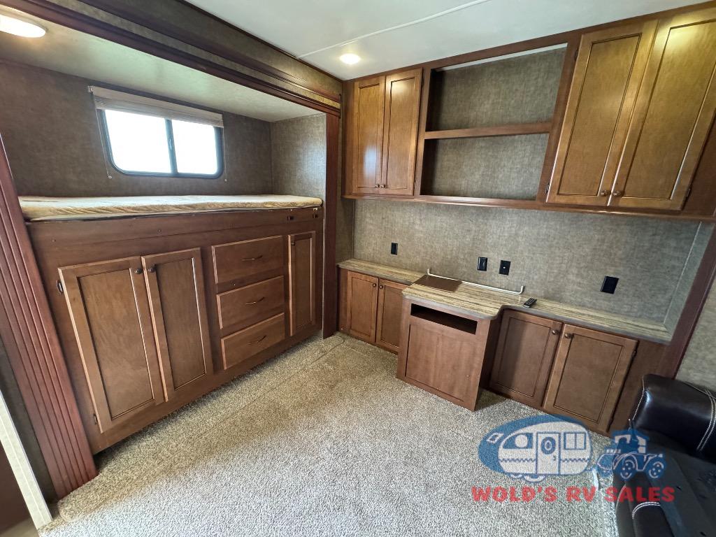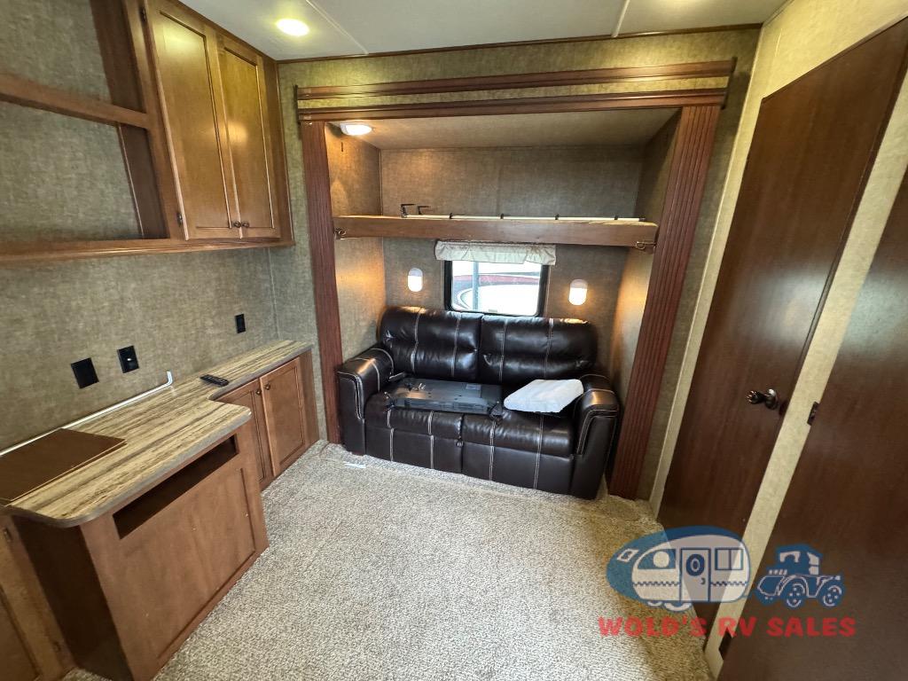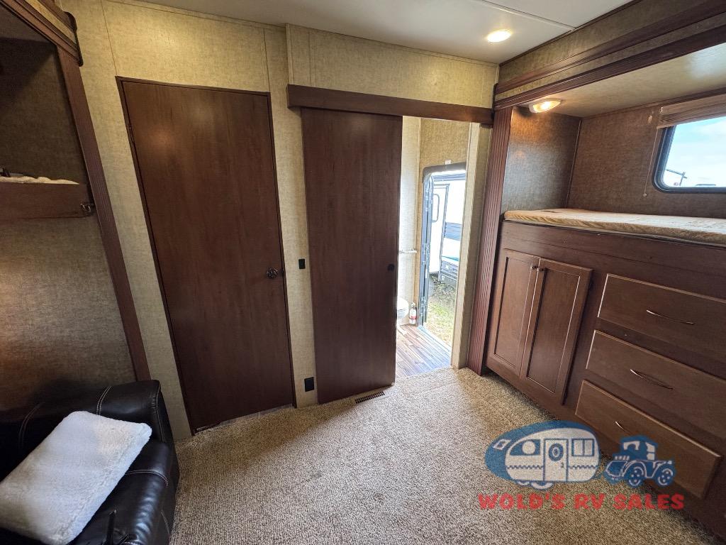 As you enter the Breckenridge Lakeview 42BH you will find that there is a rear bunk house which is great for your kids. The bunk house has 2 slide with a fold down bunk and a sofa. Across from the sofa there is another set of bunks and half bath