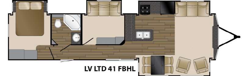 The Breckenridge Lakeview Limited 41 FBHL destination trailer features quad slides, a private den, as well as two entrance doors.