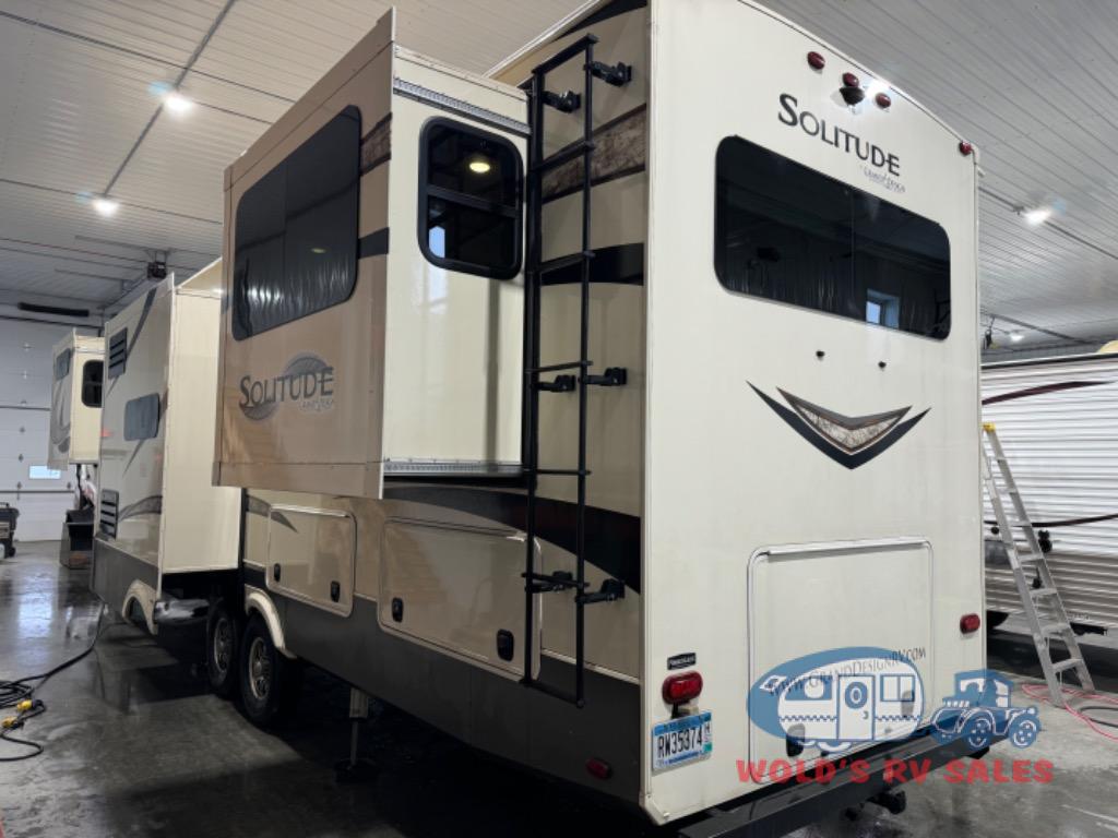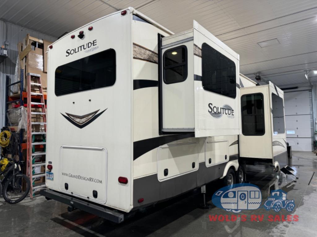 With each Solitude fifth wheel by Grand Design you will receive affordable luxury for your extended stays or weekend get-a-ways. From the solid foundation including a Equa-Flex suspension to the taller ceilings, taller and deeper cabinets, the power reclining theatre seating with swivel table including a heat and massage function, a pet dish drawer, a Stealth AC system, and the Weather-Tek package which allows you to travel any season you choose. It's time to enjoy luxury living where ever you decide to land.