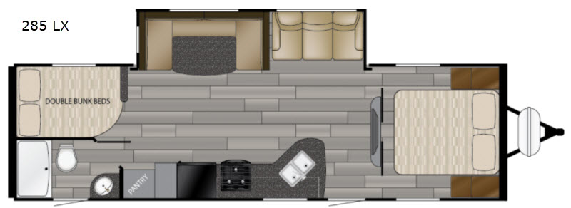 Come see just how fun and easy camping can be when you choose to camp with this single slide out Prowler Lynx 285 LX travel trailer. This model can easily accommodate up to nine campers so you can easily camp with friends if you like! You will find plenty of double features throughout from the two entry doors to the rear set of double bunk beds. Mom and dad will enjoy the sliding doors along either side of the entertainment center, which provides plenty of privacy in the front bedroom. In the evening plan to grab your camp chair, a snack, and head out to enjoy the scenic sunset while sitting under the 17' awning and more!