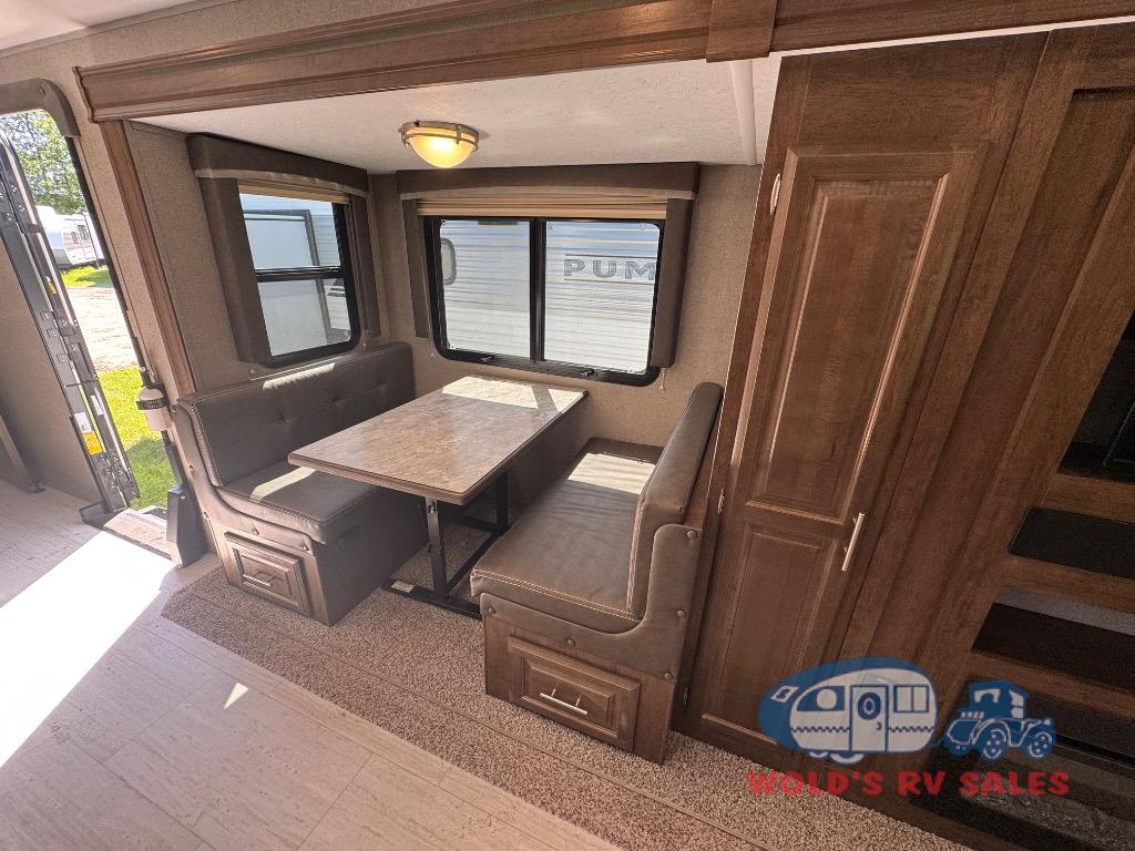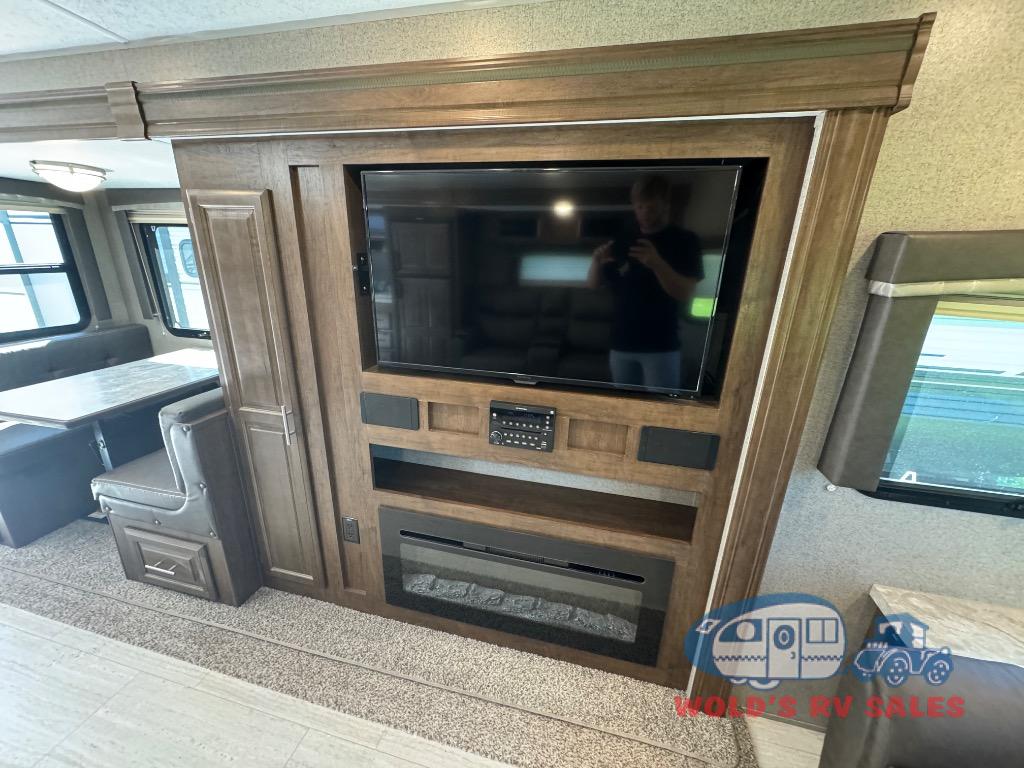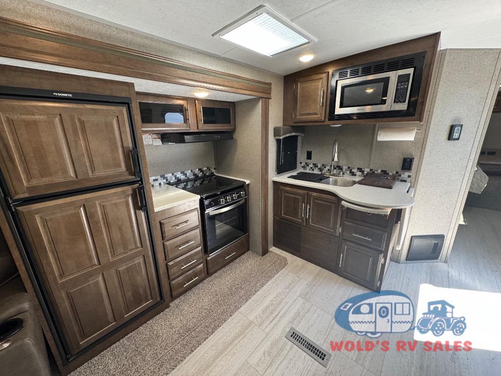 If you have been dreaming of traveling in comfort with everything you need to stay at your favorite campground for a weekend or longer, then this Forest River Rockwood Ultra Lite travel trailer might just fit your dreams and needs perfectly. You will enjoy having your own space in the front master suite with a queen Serta bed that has nightstands on either side, a wardrobe slide, and a private entrance into the dual-entry bath. You will find sleeping space for your kids or grandkids on the booth dinette and the 76" hide-a-bed sofa once prepared for the night. You might even fall asleep in the theater seating if you sit there long enough in front of the fireplace. The chef can wake up the next morning to make breakfast on the outside kitchen or inside with the full amenities including a countertop extension!