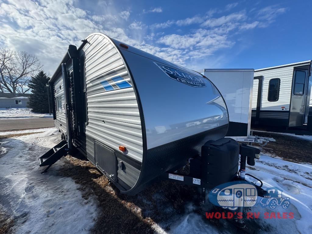 Each one of these Forest River Salem Cruise Lite travel trailers offer quality and value with a full list of great features! They are built with a fully walkable, one piece SuperFlex roof, a powder coated I-beam frame, a cambered chassis, and has R-7 fiberglass insulation throughout to keep the heat in during the winter and the cool air in from the 13.5k A/C during the summer. The aerodynamic front radius profile makes it easier to tow these units, and the diamond plate rock guard will keep your unit protected while traveling down the road. Each model comes with the Best in Class Value package which includes an upgraded designer furniture package, true stabilizer jacks with JT StrongArms, WiFi prep, and designated CPAP storage. Check out the long list of standard features in person today!