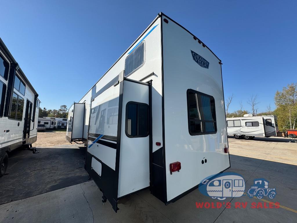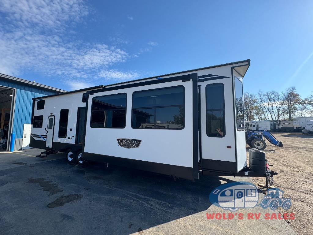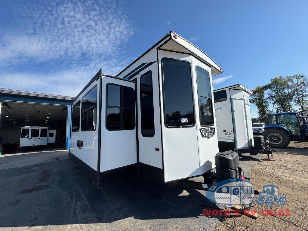 You will experience a home away from home with any one of these Forest River Salem Grand Villa destination trailers! Their construction consists of a 12" forged I-beam frame, a cambered chassis, and plywood floor decking, as well as 5" bowed truss roof rafters, 3/8" roof decking, and color coded water lines to make life easier. The one-piece, seamless slides and 96" interior height makes for more walking around space. A Best in Class Value package includes upgraded designer furniture, a central vacuum with sweep attachment, and stainless steel kitchen appliances to keep your bellies full. Plus, it has a heated and enclosed Accesssi-Belly with removable panels and an exterior LED light strip under the awning. Come choose your favorite model today!