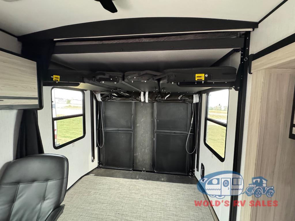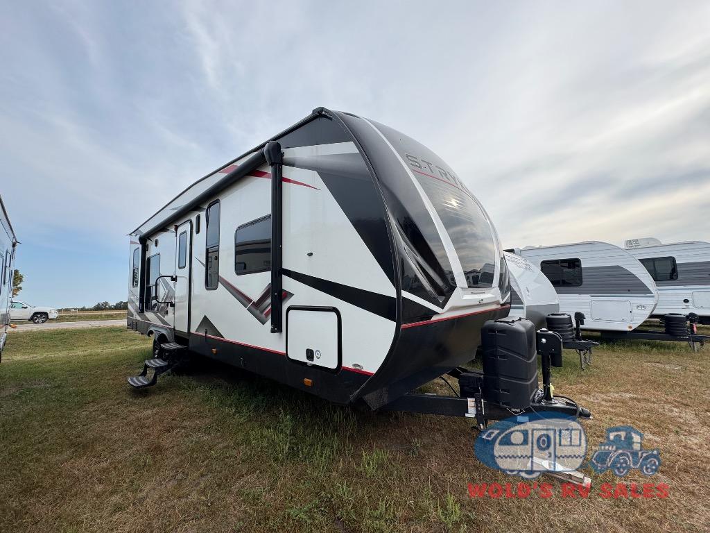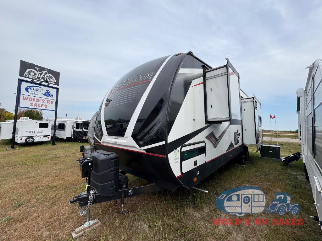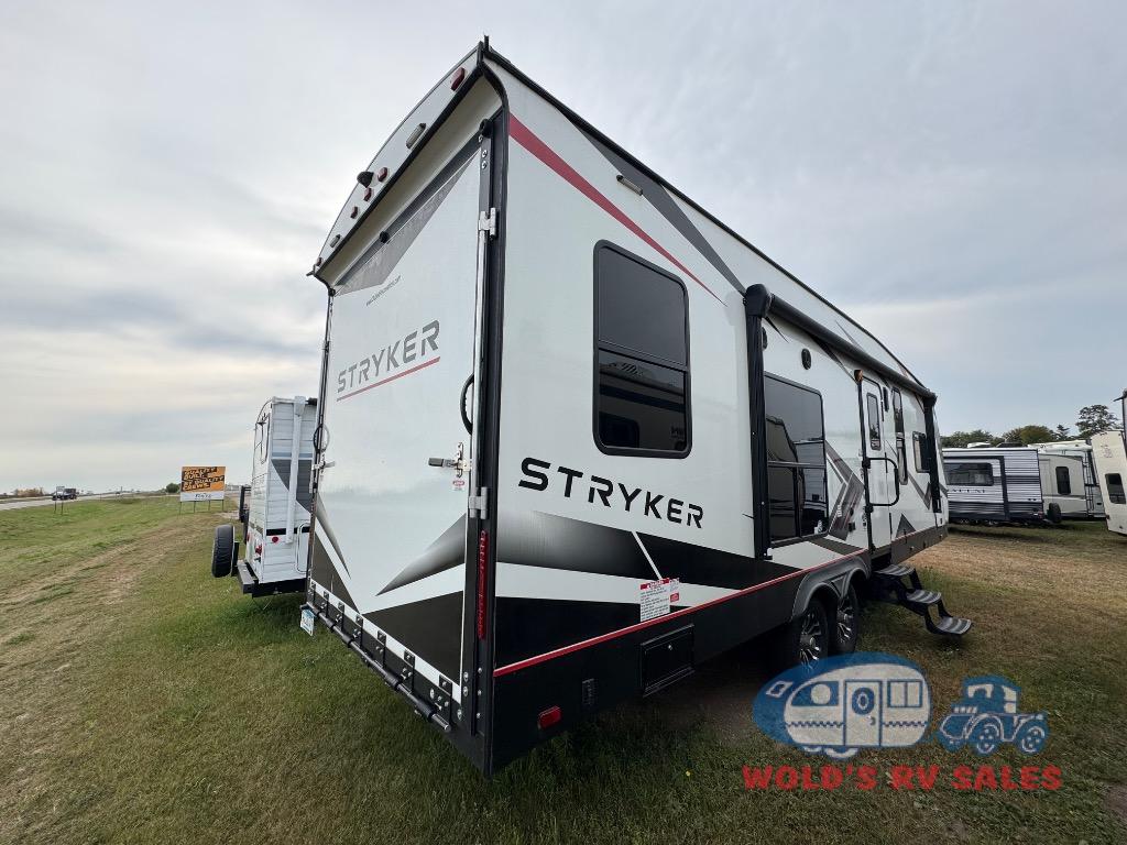 Each Stryker toy hauler travel trailer by Cruiser starts with a powder coated structural steel I-beam frame, Azdel composite laminated sidewalls, and a 102" wide body, perfect for your side-by-side, dirt bikes, or kayaks! The EZ flex rubberized suspension provides smooth towing on tougher roads, and the painted molded fiberglass front cap not only looks sleek, but provides better protection. Inside, you'll find barreled ceilings up to 98" in height, hardwood cabinet doors, solid surface kitchen cabinets, and numerous USB ports and 110V outlets. The removable carpet in the garage will create an open concept you are sure to love, and the industry-first pet palace under the bed will allow you to bring your loyal furry friends along. There's so much more to love about the Stryker toy haulers, like the premium sound system, the large windows, tons of storage space, and the list goes on!