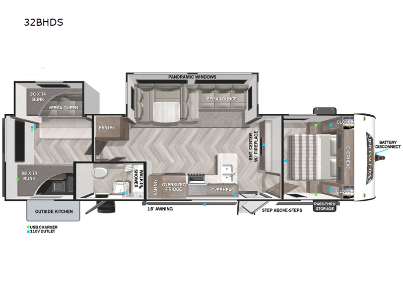 Forest River Wildwood travel trailer 32BHDS highlights: