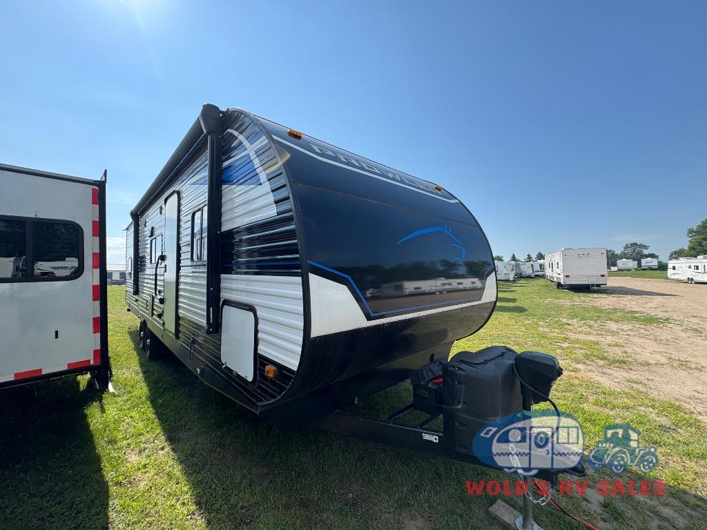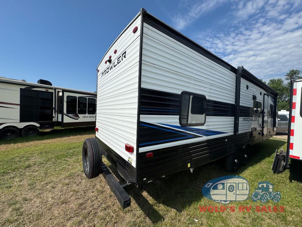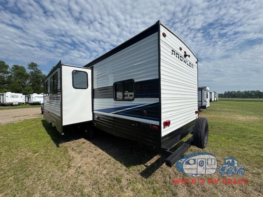 Get ready for comfortable and easy camping with the Prowler travel trailers by Heartland. These models feature durable construction with the performastructure aluminum front wall, the cambered structural steel I-beam frame, and the fully walkable roof. The MEGA bright pass-through storage features 52 cu. ft. of exterior storage with mega sized access doors, LED lights, and a finished interior to keep your gear secure. You'll fall in love with the at-home kitchen the includes Duralast countertops, a residential refrigerator, plus a stainless steel double bowl undermount sink for easy clean-up. These travel trailers also feature panoramic windows, an EZ clean interior, USB charging ports throughout, and many more comforts! Don't let the Prowler travel trailers slip away. Choose your favorite floorplan today!