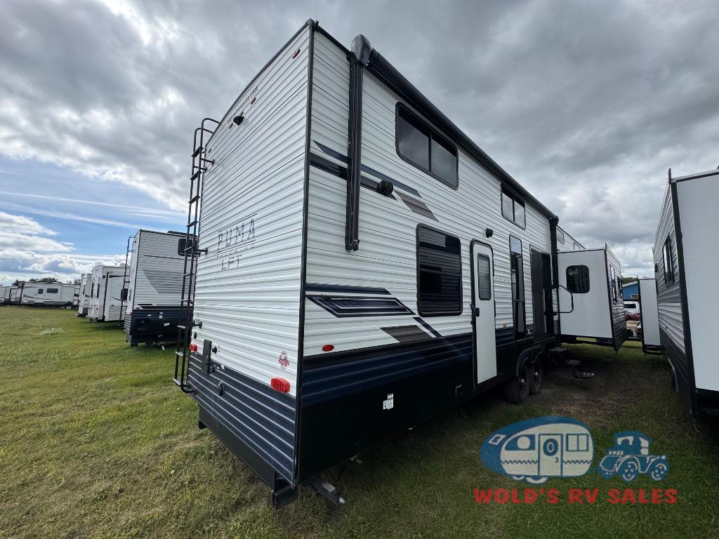 Each Puma Destination trailer by Palomino is designed to give you unforgettable getaways to the destination of your choice! The AlphaPly roofing membrane and powder coated frames are what make these models ultra durable, and the super lube axles will provide smooth towing from home to campground. The Value Shopper Package includes Beauflor linoleum, an AM/FM/Bluetooth stereo, a high-rise faucet with a sprayer, bedroom TV hook-up, and many many more conveniences. You'll find the designer window treatments in the living room and decorative kitchen backsplash will make your space feel more like home, plus there are USB charging ports for your electronics and plenty of storage space for all your belongings. The optional Marquis Edition Package includes an outside shower, a solid surface countertop, two exterior speakers, and more features that will add to your comfort!